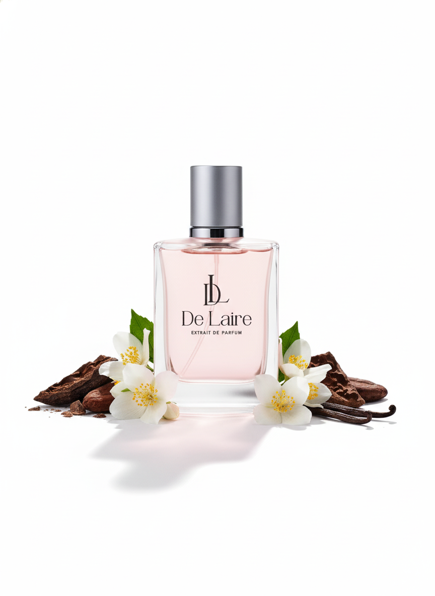 Experience this women’s luxury fragrance inspired by white-floral and gourmand elegance. With top notes of almond and coffee, a heart of jasmine and tuberose, and a base of cocoa, tonka and vanilla, it’s perfect for day or night wear in cooler seasons. Presented in a sleek bottle with light pink juice on a white background. This is an inspired product for confident feminine style.